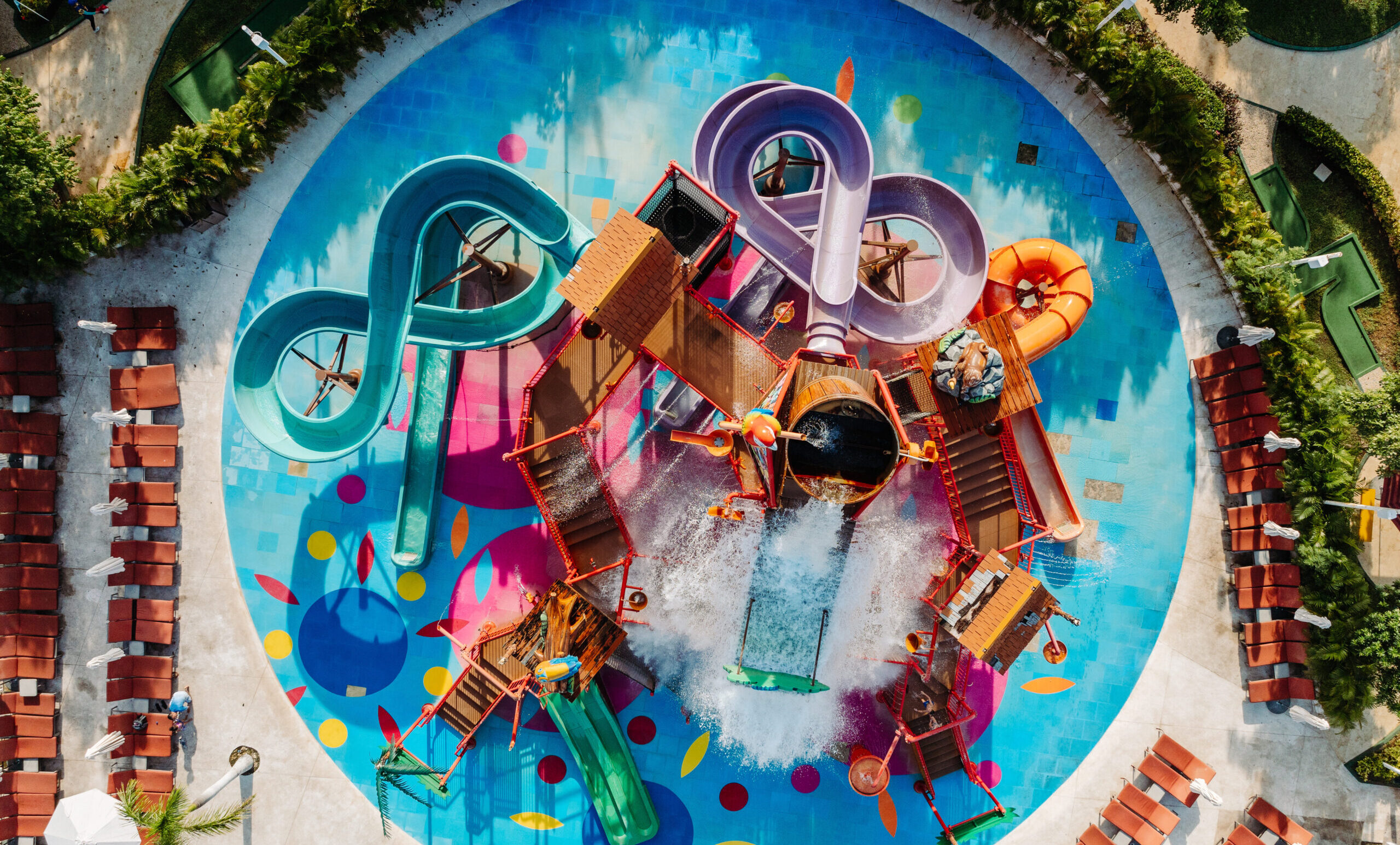 Aqua Nick® at Nickelodeon Hotels & Resorts Riviera Maya brings beloved characters to life in a 15,000-square-foot water wonderland. Highlights include the Soak Summit Tower with exhilarating slides, Riptide Rush, and themed zones such as Bikini Bottom Beach and PAW Patrol Adventure Bay. The Super Sliming event is a must-see feature, allowing you to get soaked in Nickelodeon’s signature green goo.